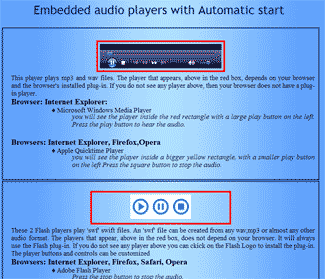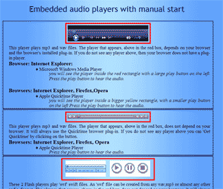 Website audio usually consists of MP3, Flash or Wav formatted files. These files use browser plugins for playing the audio. Microsoft Windows Media Player, Apple Quicktime, Flash player and Realnetwork Realplayer are a few of the popular players. We design webpages, with embedded audio, to play on most browser plugins. Audio files or snippets can also be designed to pop-up in a child window. This allows a viewer to view additional information related to the audio selected without loosing their original view. We also can provide the ability to index the start position of your audio file beyond the beginning.